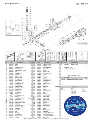 The SXWA4G50 pump by AR Pumps is rated Max GPM 4 Max L/Min 15.1 Max PSI 5000 MaxBar 345 Power EBHP 13 Bore Dia mm 18 Stroke mm 12.2 Crankshaft ID Stamp 5 Inlet 1/2' F Outlet 3/8" F Max Temp 140° F Oil Capacity (oz) 32 Weight 35 RPM 1750 Shaft Size 24mm Shaft Version N Shaft Type Solid Replacement Parts (64...