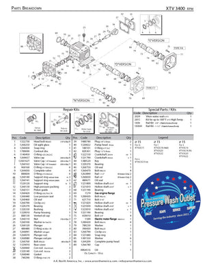 The XW-M15.30N pump by AR features: Max GPM 4 Max L/Min 15 Max PSI 4350 MaxBar 300 Power EBHP 12 Bore Dia mm 20 Stroke mm 12.2 Crankshaft ID Stamp 5 Inlet 3/4" F Outlet 3/8" F Max Temp 140° F Oil Capacity (oz) 32 Weight 34 RPM 1450 Shaft Size 24mm Shaft Version N Shaft Type Solid Replacement Parts Parts Br...