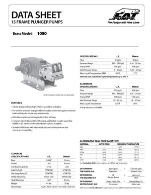 This CAT pump is rated: 3.0 GPM 1000 PSI 1330 RPM 16.5 mm 12 lb. Replacement Parts Pump Oil (3364) Cup Kit - 30023 Piston Kit - 30202 (3367) Seal Kit - 30305 (3368) Valve Kit - 30686 Pump Manual Pump Service Manual