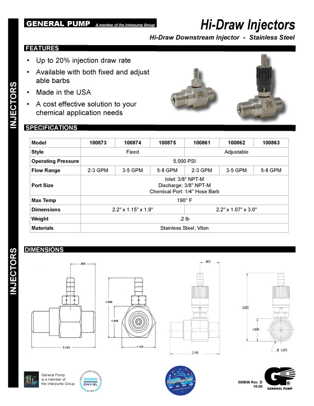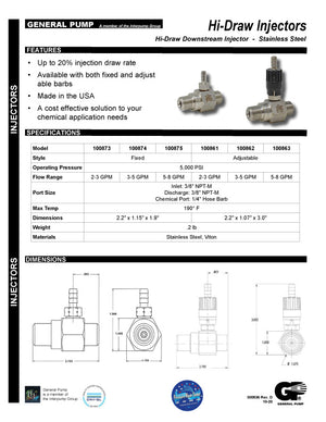 {"id":8459991089452,"title":"FIXED STAINLESS STEEL HIGH DRAW CHEMICAL INJECTORS by GENERAL PUMP","handle":"fixed-stainless-steel-high-draw-chemical-injectors-by-general-pump","description":"\u003cp\u003eConsider these fixed stainless steel high draw chemical injectors by General Pump. \u003c\/p\u003e\n\u003cp\u003eThese injectors are rated:\u003c\/p\u003e\n\u003cul\u003e\n\u003cli\u003eup to 20% draw rate\u003c\/li\u003e\n\u003cli\u003e5000 PSI maximum\u003c\/li\u003e\n\u003cli\u003e190 degrees F maximum\u003c\/li\u003e\n\u003cli\u003e3\/8\" MPT inlet\/outlet\u003c\/li\u003e\n\u003c\/ul\u003e\n\u003cp\u003eAvailable in: \u003c\/p\u003e\n\u003cp\u003e\u003cstrong\u003e\u003cspan style=\"text-decoration: underline;\"\u003eGP Number GPM\u003c\/span\u003e\u003c\/strong\u003e\u003c\/p\u003e\n\u003cp\u003e100873 2-3\u003c\/p\u003e\n\u003cp\u003e100874 3-5\u003c\/p\u003e\n\u003cp\u003e100875 5-8\u003c\/p\u003e\n\u003cp\u003e \u003c\/p\u003e\n\u003cp\u003e \u003c\/p\u003e\n\u003cp\u003e \u003c\/p\u003e","published_at":"2023-07-17T09:20:50-04:00","created_at":"2023-07-17T09:20:58-04:00","vendor":"General Pump","type":"Pressure Washers","tags":["atlanta pressure wash supplies","chemical injection","chemical injector","chemical injectors","General Pump","georgia pressure wash store","georgia pressure wash supplies","north american pressure wash outlet","North Georgia pressure wash supplies","power wash equipment","pressure wash equipment","pressure wash supply store","stainless steel chemical injector"],"price":8080,"price_min":8080,"price_max":8080,"available":true,"price_varies":false,"compare_at_price":null,"compare_at_price_min":0,"compare_at_price_max":0,"compare_at_price_varies":false,"variants":[{"id":45724472279340,"title":"2-3 GPM (7266)","option1":"2-3 GPM (7266)","option2":null,"option3":null,"sku":"7266","requires_shipping":true,"taxable":true,"featured_image":{"id":51466979377452,"product_id":8459991089452,"position":2,"created_at":"2025-09-24T16:08:58-04:00","updated_at":"2025-09-24T16:08:58-04:00","alt":"FIXED STAINLESS STEEL HIGH DRAW CHEMICAL INJECTORS by GENERAL PUMP","width":225,"height":225,"src":"\/\/pressurewashpartsdelivered.com\/cdn\/shop\/files\/100873_f4999f38-f681-4258-a11d-aad6c0c8b4a6.jpg?v=1758744538","variant_ids":[45724472279340,45724472312108,45724472344876]},"available":true,"name":"FIXED STAINLESS STEEL HIGH DRAW CHEMICAL INJECTORS by GENERAL PUMP - 2-3 GPM (7266)","public_title":"2-3 GPM (7266)","options":["2-3 GPM (7266)"],"price":8080,"weight":454,"compare_at_price":null,"inventory_management":"shopify","barcode":null,"featured_media":{"alt":"FIXED STAINLESS STEEL HIGH DRAW CHEMICAL INJECTORS by GENERAL PUMP","id":42417393271084,"position":2,"preview_image":{"aspect_ratio":1.0,"height":225,"width":225,"src":"\/\/pressurewashpartsdelivered.com\/cdn\/shop\/files\/100873_f4999f38-f681-4258-a11d-aad6c0c8b4a6.jpg?v=1758744538"}},"requires_selling_plan":false,"selling_plan_allocations":[]},{"id":45724472312108,"title":"3-5 GPM (7231)","option1":"3-5 GPM (7231)","option2":null,"option3":null,"sku":"7231","requires_shipping":true,"taxable":true,"featured_image":{"id":51466979377452,"product_id":8459991089452,"position":2,"created_at":"2025-09-24T16:08:58-04:00","updated_at":"2025-09-24T16:08:58-04:00","alt":"FIXED STAINLESS STEEL HIGH DRAW CHEMICAL INJECTORS by GENERAL PUMP","width":225,"height":225,"src":"\/\/pressurewashpartsdelivered.com\/cdn\/shop\/files\/100873_f4999f38-f681-4258-a11d-aad6c0c8b4a6.jpg?v=1758744538","variant_ids":[45724472279340,45724472312108,45724472344876]},"available":true,"name":"FIXED STAINLESS STEEL HIGH DRAW CHEMICAL INJECTORS by GENERAL PUMP - 3-5 GPM (7231)","public_title":"3-5 GPM (7231)","options":["3-5 GPM (7231)"],"price":8080,"weight":454,"compare_at_price":null,"inventory_management":"shopify","barcode":null,"featured_media":{"alt":"FIXED STAINLESS STEEL HIGH DRAW CHEMICAL INJECTORS by GENERAL PUMP","id":42417393271084,"position":2,"preview_image":{"aspect_ratio":1.0,"height":225,"width":225,"src":"\/\/pressurewashpartsdelivered.com\/cdn\/shop\/files\/100873_f4999f38-f681-4258-a11d-aad6c0c8b4a6.jpg?v=1758744538"}},"requires_selling_plan":false,"selling_plan_allocations":[]},{"id":45724472344876,"title":"5-8 GPM (NB7267)","option1":"5-8 GPM (NB7267)","option2":null,"option3":null,"sku":"7267","requires_shipping":true,"taxable":true,"featured_image":{"id":51466979377452,"product_id":8459991089452,"position":2,"created_at":"2025-09-24T16:08:58-04:00","updated_at":"2025-09-24T16:08:58-04:00","alt":"FIXED STAINLESS STEEL HIGH DRAW CHEMICAL INJECTORS by GENERAL PUMP","width":225,"height":225,"src":"\/\/pressurewashpartsdelivered.com\/cdn\/shop\/files\/100873_f4999f38-f681-4258-a11d-aad6c0c8b4a6.jpg?v=1758744538","variant_ids":[45724472279340,45724472312108,45724472344876]},"available":true,"name":"FIXED STAINLESS STEEL HIGH DRAW CHEMICAL INJECTORS by GENERAL PUMP - 5-8 GPM (NB7267)","public_title":"5-8 GPM (NB7267)","options":["5-8 GPM (NB7267)"],"price":8080,"weight":454,"compare_at_price":null,"inventory_management":"shopify","barcode":null,"featured_media":{"alt":"FIXED STAINLESS STEEL HIGH DRAW CHEMICAL INJECTORS by GENERAL PUMP","id":42417393271084,"position":2,"preview_image":{"aspect_ratio":1.0,"height":225,"width":225,"src":"\/\/pressurewashpartsdelivered.com\/cdn\/shop\/files\/100873_f4999f38-f681-4258-a11d-aad6c0c8b4a6.jpg?v=1758744538"}},"requires_selling_plan":false,"selling_plan_allocations":[]}],"images":["\/\/pressurewashpartsdelivered.com\/cdn\/shop\/files\/100873-Injector_16511245-6338-470b-a029-f1449a63a9bd.jpg?v=1758744538","\/\/pressurewashpartsdelivered.com\/cdn\/shop\/files\/100873_f4999f38-f681-4258-a11d-aad6c0c8b4a6.jpg?v=1758744538","\/\/pressurewashpartsdelivered.com\/cdn\/shop\/files\/100873-Injector_55194fc2-2637-499d-9218-bcc05d135693.jpg?v=1758744538","\/\/pressurewashpartsdelivered.com\/cdn\/shop\/files\/100873-Injector_e3c9dba7-547f-4da0-ae55-6b4fef6fe8e4.jpg?v=1758744538","\/\/pressurewashpartsdelivered.co
