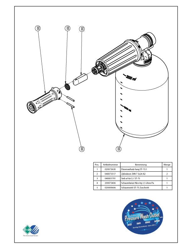 In conjunction with a downstream or high-pressure injector this AIRLESS nozzle will produce thick foam over a wide range quickly. Connect to the outlet of your gun or lance. Cover a building in no time. Features: Stainless steel "wool" type foam pad Air intake in the front of the nozzle 212 degrees F maximum 4000 PSI maximum If the Suttne...