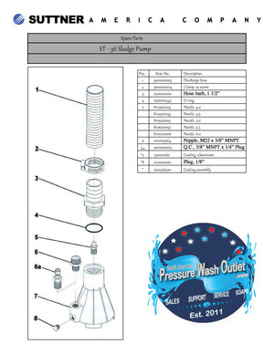 {"id":8460088377644,"title":"ST-36 SLUDGE PUMP KITS by SUTTNER","handle":"sludge-pump-by-suttner","description":"\u003ch3\u003e\u003cspan style=\"text-decoration: underline;\"\u003eApplications:\u003c\/span\u003e\u003c\/h3\u003e\n\u003cp\u003eAttaches to pressure washer and turns it into a high output pump. Great for flood cleanup, car wash pits, draining pools or chemical spills.\u003c\/p\u003e\n\u003ch3\u003e\u003cspan style=\"text-decoration: underline;\"\u003eFeatures:\u003c\/span\u003e\u003c\/h3\u003e\n\u003cp class=\"prod-features\"\u003e• Water flowing through the high pressure nozzle creates a \u003cbr\u003epowerful venturi suction that vacuums up slurry solutions.\u003c\/p\u003e\n\u003cp class=\"prod-features\"\u003e• Debris as large as 3\/4” will pass through the casting and \u003cbr\u003eout the discharge hose.\u003c\/p\u003e\n\u003cp class=\"prod-features\"\u003e• Vacuums up liquid slurries at a ratio of 11:1 \u003cbr\u003e(Example: 4 GPM will produce an output of 44 GPM).\u003c\/p\u003e\n\u003cul\u003e\n\u003cli\u003e\n\u003cdiv\u003eUsed with 1 1\/2\" AG Suction hose.\u003c\/div\u003e\n\u003c\/li\u003e\n\u003c\/ul\u003e\n\u003cul\u003e\n\u003cli\u003e\n\u003cdiv\u003eThe kits INCLUDE \u003cstrong\u003e\u003cspan style=\"color: #0000ff;\"\u003e\u003ca style=\"color: #0000ff;\" href=\"https:\/\/www.pressurewashoutlet.com\/products\/spiraflex-aggie-hose\"\u003e20' of hose\u003c\/a\u003e \u003cspan style=\"color: #000000;\"\u003eAND\u003c\/span\u003e \u003c\/span\u003e\u003c\/strong\u003e3\/8\" MPT Plug on inlet\u003c\/div\u003e\n\u003c\/li\u003e\n\u003c\/ul\u003e\n\u003cp class=\"prod-features\"\u003e\u003cbr\u003e\u003ciframe src=\"https:\/\/www.youtube.com\/embed\/03kmvffh6qU\" height=\"205\" width=\"280\"\u003e\u003c\/iframe\u003e\u003c\/p\u003e\n\u003ch3\u003e\u003cspan style=\"text-decoration: underline;\"\u003eTechnical Notes:\u003c\/span\u003e\u003c\/h3\u003e\n\u003cp\u003e\u003cspan\u003e\u003cem\u003e\u003c\/em\u003eThe high pressure line of the pressure washer is connected to the sludge vacuum attachment. The operator may connect the high pressure hose to the sludge vacuum inlet, or choose to hook the wand to the inlet. Water flow can then be controlled with the trigger gun. The inlet is normally a 1\/4\" QC plug or M22 screw nipple for quick attachment. After securing the attachment, run the pressure washer as normally instructed.\u003c\/span\u003e\u003cspan style=\"text-decoration: underline;\"\u003e\u003cbr\u003e\u003c\/span\u003e\u003c\/p\u003e\n\u003cp\u003e\u003cspan\u003eThe velocity of the water flow exiting the nozzle creates a powerful venturi suction. This suction power can pick up slurry, along with rocks and debris up to 3\/4\" diameter. Ensure the outlet hose is directed properly and place the sludge vacuum into the flood waters. It may be submerged all the way to the floor. \u003c\/span\u003e\u003c\/p\u003e\n\u003cp\u003e\u003cspan\u003eThe discharge hose is normally 15' to 25' feet long. Operators may need to check with authorities to see about discharging into storm sewers.\u003c\/span\u003e\u003c\/p\u003e\n\u003cp class=\"prod-features\"\u003e\u003cbr\u003e\u003cstrong\u003e\u003cspan style=\"color: #0000ff;\"\u003e\u003ca style=\"color: #0000ff;\" href=\"https:\/\/cdn.shopify.com\/s\/files\/1\/1183\/1612\/files\/ST36_Sludge_Pump-plist.pdf?5386354548781476224\"\u003eProduct Spec Sheet Available Here\u003c\/a\u003e\u003c\/span\u003e\u003c\/strong\u003e\u003c\/p\u003e","published_at":"2023-07-17T09:49:36-04:00","created_at":"2023-07-17T09:49:44-04:00","vendor":"Suttner","type":"Sludge Pump","tags":["atlanta pressure wash supplies","georgia pressure wash store","georgia pressure wash supplies","industrial pressure wash pumps","industrial pressure washer","industrial pressure washers","north american pressure wash outlet","North Georgia pressure wash supplies","power wash equipment","pressure wash equipment","reclaim","reclaim equipment","sludge pump","ST-36","ST36","Suttner","water extraction"],"price":9800,"price_min":9800,"price_max":17060,"available":true,"price_varies":true,"compare_at_price":null,"compare_at_price_min":0,"compare_at_price_max":0,"compare_at_price_varies":false,"variants":[{"id":45724727673132,"title":"4.0 (2385)","option1":"4.0 (2385)","option2":null,"option3":null,"sku":"2385","requires_shipping":true,"taxable":true,"featured_image":{"id":52759566287148,"product_id":8460088377644,"position":1,"created_at":"2026-04-02T12:22:11-04:00","updated_at":"2026-04-02T12:22:49-04:00","alt":null,"width":365,"height":600,"src":"\/\/pressurewashpartsdelivered.com\/cdn\/shop\/files\/sludge-pump-complete.jpg?v=1775146969","variant_ids":[45724727673132,45724727705900,45724727738668,45724727771436,45724727804204]},"available":true,"name":"ST-36 SLUDGE PUMP KITS by SUTTNER - 4.0 (2385)","public_title":"4.0 (2385)","options":["4.0 (2385)"],"price":17060,"weight":3629,"compare_at_price":null,"inventory_management":"shopify","barcode":null,"featured_media":{"alt":null,"id":43600586211628,"position":1,"preview_image":{"aspect_ratio":0.608,"height":600,"width":365,"src":"\/\/pressurewashpartsdelivered.com\/cdn\/shop\/files\/sludge-pump-complete.jpg?v=1775146969"}},"requires_selling_plan":false,"selling_plan_allocations":[],"quantity_rule":{"min":1,"max":null,"increment":1}},{"id":45724727705900,"title":"4.5 (2386)","option1":"4.5 (2386)","option2":null,"option3":null,"sku":"2386","requires_shipping":true,"taxable":true,"featured_image":{"id":52759566287148,"product_id":8460088377644,"position":1,"created_at":"2026-04-02T12:22:11-04:00","updated_at":"2026-04-02T12:22:49-04:00","alt":null,"width":365,"height":600,"src":"\/\/pressurewashpartsdelivered.com\/cdn\/shop\/files\/sludge-pump-complete.jpg?v=1775146969","variant_ids":[45724727673132,45724727705900,45724727738668,45724727771436,45724727804204]},"available":true,"name":"ST-36 SLUDGE PUMP KITS by SUTTNER - 4.5 (2386)","public_title":"4.5 (2386)","options":["4.5 (2386)"],"price":17060,"weight"