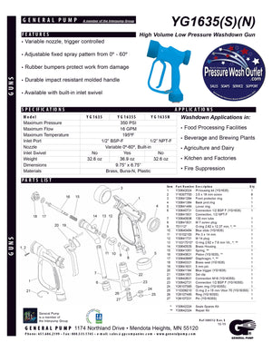 {"id":8460104794412,"title":"WASH DOWN GUN 16 GPM by GENERAL PUMP","handle":"7501-01-general-pump-wash-down-gun-16-gpm","description":"\u003cp\u003eThis high-volume, low-pressure gun is excellent for wash down applications in food processing facilities, beverage and brewing plants, agriculture and dairy, kitchen and factories and fire suppression.\u003c\/p\u003e\n\u003cul\u003e\n\u003cli\u003eVariable nozzle, trigger controlled\u003c\/li\u003e\n\u003cli\u003eAdjustable spray pattern from 0 degrees to 60 degrees\u003c\/li\u003e\n\u003cli\u003e350 PSI max\u003c\/li\u003e\n\u003cli\u003e16 GPM max\u003c\/li\u003e\n\u003cli\u003e195-degree F max\u003c\/li\u003e\n\u003cli\u003eAvailable in Model YG1635 and YG1635S (included built in swivel) \u003c\/li\u003e\n\u003cli\u003e1\/2\" FPT inlet\u003c\/li\u003e\n\u003cli\u003e\u003cstrong\u003e\u003ca href=\"https:\/\/cdn.shopify.com\/s\/files\/1\/1183\/1612\/files\/wash-down-gun-parts-list.pdf?16050141887286850277\"\u003eProduct Spec Sheet\u003c\/a\u003e\u003c\/strong\u003e\u003c\/li\u003e\n\u003c\/ul\u003e","published_at":"2023-07-17T09:55:03-04:00","created_at":"2023-07-17T09:55:11-04:00","vendor":"General Pump","type":"Trigger Gun","tags":["16 GPM","brewery cleaning","diary farm cleaning","food grade pressure wash equipment","food grade trigger gun","food processing facility cleaning","food service industry","General Pump","industrial pressure washer","industrial pressure washers","north american pressure wash outlet","plant maintenance","plant operations","power wash equipment","pressure wash equipment","pressure wash supply store","RV65","soft wash gun","trigger gun","wash down gun"],"price":14975,"price_min":14975,"price_max":16413,"available":true,"price_varies":true,"compare_at_price":null,"compare_at_price_min":0,"compare_at_price_max":0,"compare_at_price_varies":false,"variants":[{"id":45724794978604,"title":"YG1635 (NB7052.01)","option1":"YG1635 (NB7052.01)","option2":null,"option3":null,"sku":"NB7052.01","requires_shipping":true,"taxable":true,"featured_image":{"id":51467151147308,"product_id":8460104794412,"position":1,"created_at":"2025-09-24T16:50:58-04:00","updated_at":"2025-09-24T16:50:58-04:00","alt":"High volume wash down guns available at North American Pressure Wash Outlet.","width":250,"height":250,"src":"\/\/pressurewashpartsdelivered.com\/cdn\/shop\/files\/39344_fc94db9f-321a-4b6e-8212-93858d2f373f.jpg?v=1758747058","variant_ids":[45724794978604,45724795011372]},"available":true,"name":"WASH DOWN GUN 16 GPM by GENERAL PUMP - YG1635 (NB7052.01)","public_title":"YG1635 (NB7052.01)","options":["YG1635 (NB7052.01)"],"price":15012,"weight":1361,"compare_at_price":null,"inventory_management":"shopify","barcode":null,"featured_media":{"alt":"High volume wash down guns available at North American Pressure Wash Outlet.","id":42417564746028,"position":1,"preview_image":{"aspect_ratio":1.0,"height":250,"width":250,"src":"\/\/pressurewashpartsdelivered.com\/cdn\/shop\/files\/39344_fc94db9f-321a-4b6e-8212-93858d2f373f.jpg?v=1758747058"}},"requires_selling_plan":false,"selling_plan_allocations":[]},{"id":45724795011372,"title":"YG1635S (NB7052.02)","option1":"YG1635S (NB7052.02)","option2":null,"option3":null,"sku":"NB7052.02","requires_shipping":true,"taxable":true,"featured_image":{"id":51467151147308,"product_id":8460104794412,"position":1,"created_at":"2025-09-24T16:50:58-04:00","updated_at":"2025-09-24T16:50:58-04:00","alt":"High volume wash down guns available at North American Pressure Wash Outlet.","width":250,"height":250,"src":"\/\/pressurewashpartsdelivered.com\/cdn\/shop\/files\/39344_fc94db9f-321a-4b6e-8212-93858d2f373f.jpg?v=1758747058","variant_ids":[45724794978604,45724795011372]},"available":true,"name":"WASH DOWN GUN 16 GPM by GENERAL PUMP - YG1635S (NB7052.02)","public_title":"YG1635S (NB7052.02)","options":["YG1635S (NB7052.02)"],"price":16413,"weight":1361,"compare_at_price":null,"inventory_management":"shopify","barcode":null,"featured_media":{"alt":"High volume wash down guns available at North American Pressure Wash Outlet.","id":42417564746028,"position":1,"preview_image":{"aspect_ratio":1.0,"height":250,"width":250,"src":"\/\/pressurewashpartsdelivered.com\/cdn\/shop\/files\/39344_fc94db9f-321a-4b6e-8212-93858d2f373f.jpg?v=1758747058"}},"requires_selling_plan":false,"selling_plan_allocations":[]},{"id":45724795044140,"title":"YG1635SR (NB7052.03)","option1":"YG1635SR (NB7052.03)","option2":null,"option3":null,"sku":"NB7052.03","requires_shipping":true,"taxable":true,"featured_image":{"id":51467151245612,"product_id":8460104794412,"position":4,"created_at":"2025-09-24T16:50:58-04:00","updated_at":"2025-09-24T16:50:58-04:00","alt":"High volume wash down guns available at North American Pressure Wash Outlet.","width":1280,"height":1280,"src":"\/\/pressurewashpartsdelivered.com\/cdn\/shop\/files\/7261_f8e71722-4aff-4f5b-81d9-d84bc37f1364.jpg?v=1758747058","variant_ids":[45724795044140]},"available":true,"name":"WASH DOWN GUN 16 GPM by GENERAL PUMP - YG1635SR (NB7052.03)","public_title":"YG1635SR (NB7052.03)","options":["YG1635SR (NB7052.03)"],"price":14975,"weight":1361,"compare_at_price":null,"inventory_management":"shopify","barcode":"N7261","featured_media":{"alt":"High volume wash down guns available at North American Pressure Wash Outlet.","id":42417564844332,"position":4,"preview_image":{"aspect_ratio":1.0,"height":1280,"width":1280,"src":"\/\/pressurewashpartsdelivered.com\/cdn\/shop\/files\/7261_f8e71722-4aff-4f5b-81d9-d84bc37f1364.jpg?v=1758747058"}},"requires_selling_plan":false,"selling_plan_allocations":[]}],"images":["\/\/pressurewashpartsdelivered.com\/cdn\/shop\/files\/39344_fc94db9f-321a-4b6e-8212-93858d2f373f.jpg?v=1758747058","\/\/pressurewashpartsdelivered.com\/cdn\/shop\/files\/YG1635-WashdownGun_8f0ee26d-85cd-4493-8698-920be67adc33.jpg?v=1758747058","\/\/pressurewashpartsdelivered.com\/cdn\/shop\/files\/Spray-Gun-Brochure_dda80e7b-5c1b-4026-bb2f-bae0688c7e3c.jpg?v=1758747058","\/\/pressurewashpar