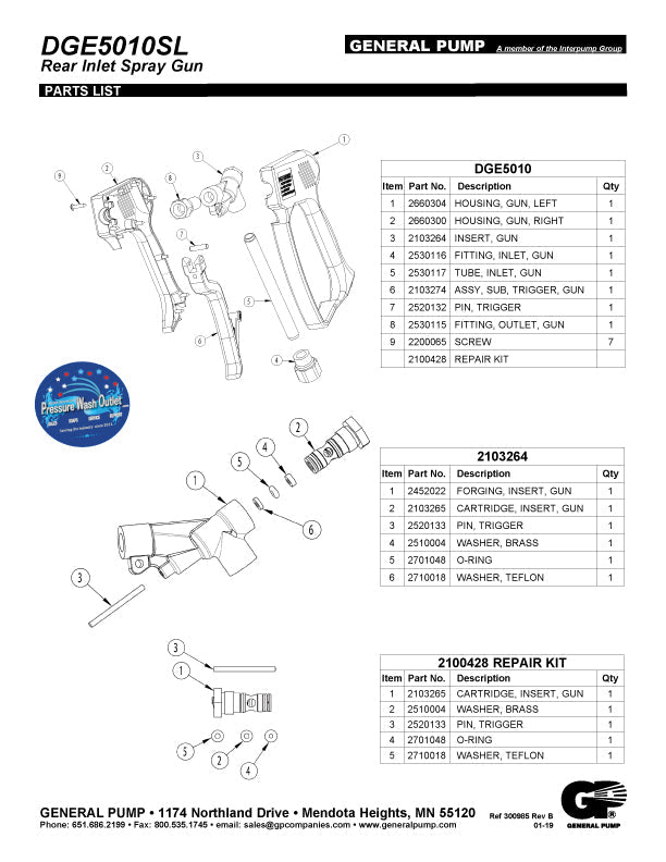 YG4500S LINEAR GUN REPAIR KIT by GP (6968)
