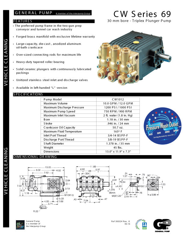 {"id":8460356059436,"title":"CW1012 PUMP by GENERAL PUMP (4537)","handle":"cw1012-pump-12gpm-1000psi-900-rpm-35mm","description":"\u003cp\u003e\u003cspan style=\"text-decoration: underline;\"\u003e\u003cstrong\u003eSolid Shaft – General Pump CW 69 Series Features:\u003c\/strong\u003e\u003c\/span\u003e\u003c\/p\u003e\n\u003cul\u003e\n\u003cli\u003eTriplex plunger pump.\u003c\/li\u003e\n\u003cli\u003eThe preferred pump frame in the two\/gun prep conveyor and tunnel car wash industry.\u003c\/li\u003e\n\u003cli\u003e12 GPM\u003c\/li\u003e\n\u003cli\u003e1000 PSI\u003c\/li\u003e\n\u003cli\u003e900 RPM\u003c\/li\u003e\n\u003cli\u003e36 lb.\u003c\/li\u003e\n\u003cli\u003eForged brass manifold with exclusive lifetime warranty.\u003c\/li\u003e\n\u003cli\u003eLarge\/capacity, die\/cast, anodized aluminum oil\/bath crankcase.\u003c\/li\u003e\n\u003cli\u003eOver\/sized connecting rods for maximum life.\u003c\/li\u003e\n\u003cli\u003eHeavy\/duty tapered roller bearings.\u003c\/li\u003e\n\u003cli\u003eSolid ceramic plungers with continuously lubricated packings.\u003c\/li\u003e\n\u003cli\u003eUnitized stainless steel inlet and discharge valves.\u003c\/li\u003e\n\u003c\/ul\u003e\n\u003cp\u003e\u003cspan style=\"text-decoration: underline;\"\u003e\u003cstrong\u003eReplacement Kits Available\u003c\/strong\u003e\u003c\/span\u003e\u003c\/p\u003e\n\u003cp\u003e\u003cspan style=\"text-decoration: underline;\"\u003e\u003c\/span\u003e\u003cspan style=\"color: #0000ff;\"\u003e\u003ca href=\"https:\/\/parts-for-pressure-washers.myshopify.com\/products\/kit-62-check-valves-6\" style=\"color: #0000ff;\"\u003eValves - Kit 62\u003c\/a\u003e\u003c\/span\u003e\u003c\/p\u003e\n\u003cp\u003e\u003cspan style=\"color: #0000ff;\"\u003ePiston Oil Seal - Kit 37\u003c\/span\u003e\u003c\/p\u003e\n\u003cp\u003e\u003cspan style=\"color: #0000ff;\"\u003e\u003ca href=\"https:\/\/parts-for-pressure-washers.myshopify.com\/products\/kit-113-packing-assembly\" style=\"color: #0000ff;\"\u003ePackings - Kit 113\u003c\/a\u003e\u003c\/span\u003e\u003c\/p\u003e\n\u003cp\u003e\u003cspan style=\"color: #0000ff;\"\u003e\u003ca href=\"https:\/\/parts-for-pressure-washers.myshopify.com\/products\/kit-967-packing-assy-for-1-cylinder\" style=\"color: #0000ff;\"\u003ePackings with Brass - Kit 967\u003c\/a\u003e\u003c\/span\u003e\u003c\/p\u003e\n\u003cp\u003e\u003cspan style=\"color: #0000ff;\"\u003ePistons - 69040109\u003c\/span\u003e\u003c\/p\u003e\n\u003cp\u003e\u003cspan style=\"color: #0000ff;\"\u003eValve Caps - 98231200\u003c\/span\u003e\u003c\/p\u003e\n\u003cp\u003e\u003cspan style=\"color: #0000ff;\"\u003e\u003ca href=\"https:\/\/parts-for-pressure-washers.myshopify.com\/products\/kit-74-piston-bolt\" style=\"color: #0000ff;\"\u003ePiston Bolts - Kit 74\u003c\/a\u003e\u003c\/span\u003e\u003c\/p\u003e\n\u003cp\u003e\u003cspan style=\"color: #0000ff;\"\u003e\u003ca href=\"https:\/\/parts-for-pressure-washers.myshopify.com\/products\/kit-32-crankshaft-oil-seal\" style=\"color: #0000ff;\"\u003eCrank Oil Seal - Kit 32\u003c\/a\u003e\u003c\/span\u003e\u003c\/p\u003e","published_at":"2023-07-17T10:54:26-04:00","created_at":"2023-07-17T10:54:30-04:00","vendor":"General Pump","type":"Pumps","tags":["1000 PSI","12.0 GPM","900 RPM","CW1012","gainesville georgia","power wash equipment","pressure wash equipment"],"price":179122,"price_min":179122,"price_max":179122,"available":true,"price_varies":false,"compare_at_price":null,"compare_at_price_min":0,"compare_at_price_max":0,"compare_at_price_varies":false,"variants":[{"id":45725629677868,"title":"Default Title","option1":"Default Title","option2":null,"option3":null,"sku":"4537","requires_shipping":true,"taxable":true,"featured_image":null,"available":true,"name":"CW1012 PUMP by GENERAL PUMP (4537)","public_title":null,"options":["Default Title"],"price":179122,"weight":16329,"compare_at_price":null,"inventory_management":null,"barcode":null,"requires_selling_plan":false,"selling_plan_allocations":[]}],"images":["\/\/pressurewashpartsdelivered.com\/cdn\/shop\/files\/s-l300_ca7fec5d-7bd9-4eb8-aac2-761006420ebc.jpg?v=1758751651","\/\/pressurewashpartsdelivered.com\/cdn\/shop\/files\/series-69_ca9563dd-ce27-433d-8d52-005db88b86e1.jpg?v=1758751651","\/\/pressurewashpartsdelivered.com\/cdn\/shop\/files\/GP-RETAILER_aa1000a3-adfa-4091-be28-d821f254c80a.jpg?v=1758751651"],"featured_image":"\/\/pressurewashpartsdelivered.com\/cdn\/shop\/files\/s-l300_ca7fec5d-7bd9-4eb8-aac2-761006420ebc.jpg?v=1758751651","options":["Title"],"media":[{"alt":null,"id":42417771643180,"position":1,"preview_image":{"aspect_ratio":1.364,"height":220,"width":300,"src":"\/\/pressurewashpartsdelivered.com\/cdn\/shop\/files\/s-l300_ca7fec5d-7bd9-4eb8-aac2-761006420ebc.jpg?v=1758751651"},"aspect_ratio":1.364,"height":220,"media_type":"image","src":"\/\/pressurewashpartsdelivered.com\/cdn\/shop\/files\/s-l300_ca7fec5d-7bd9-4eb8-aac2-761006420ebc.jpg?v=1758751651","width":300},{"alt":null,"id":42417771675948,"position":2,"preview_image":{"aspect_ratio":0.773,"height":792,"width":612,"src":"\/\/pressurewashpartsdelivered.com\/cdn\/shop\/files\/series-69_ca9563dd-ce27-433d-8d52-005db88b86e1.jpg?v=1758751651"},"aspect_ratio":0.773,"height":792,"media_type":"image","src":"\/\/pressurewashpartsdelivered.com\/cdn\/shop\/files\/series-69_ca9563dd-ce27-433d-8d52-005db88b86e1.jpg?v=1758751651","width":612},{"alt":null,"id":42417771708716,"position":3,"preview_image":{"aspect_ratio":1.0,"height":500,"width":500,"src":"\/\/pressurewashpartsdelivered.com\/cdn\/shop\/files\/GP-RETAILER_aa1000a3-adfa-4091-be28-d821f254c80a.jpg?v=1758751651"},"aspect_ratio":1.0,"height":500,"media_type":"image","src":"\/\/pressurewashpartsdelivered.com\/cdn\/shop\/files\/GP-RETAILER_aa1000a3-adfa-4091-be28-d821f254c80a.jpg?v=1758751651","width":500}],"requires_selling_plan":false,"selling_plan_groups":[],"content":"\u003cp\u003e\u003cspan style=\"text-decoration: underline;\"\u003e\u003cstrong\u003eSolid Shaft – General Pump CW 69 Series Features:\u003c\/strong\u003